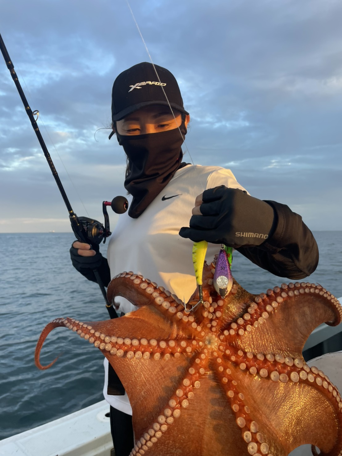 初めての船釣りで大きいタコo(*゚▽゚*)o