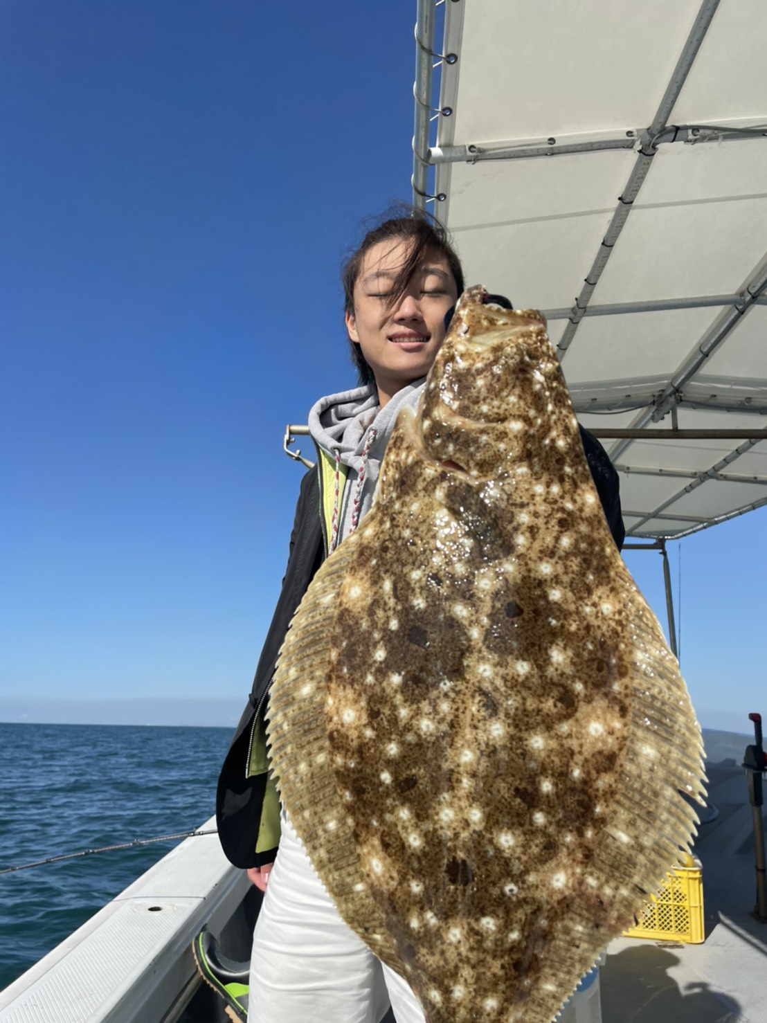 ヒラメを釣るとみんなこんな顔になります(*^^*)