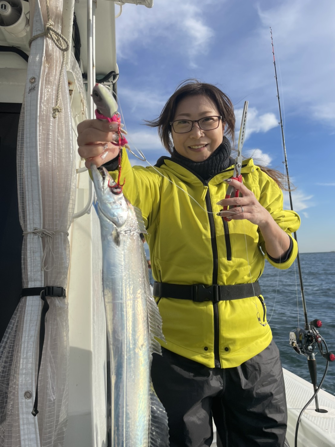 はじめてのタチウオ釣り!良いサイズですね(^o^)