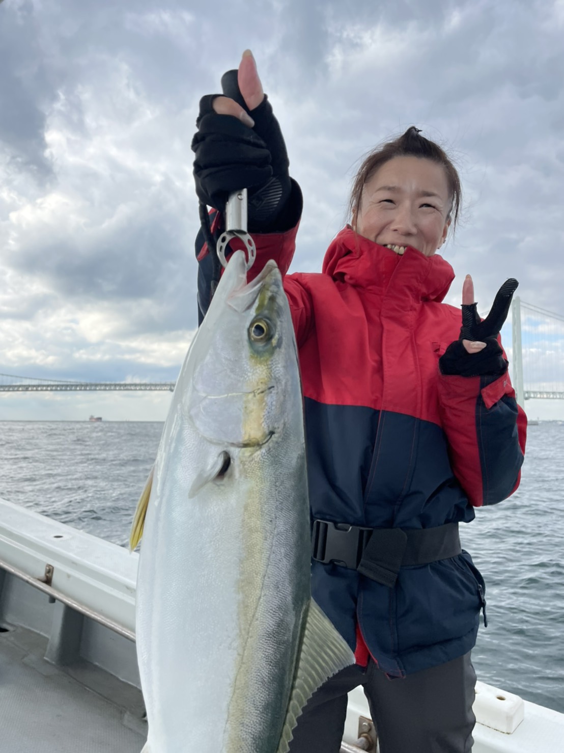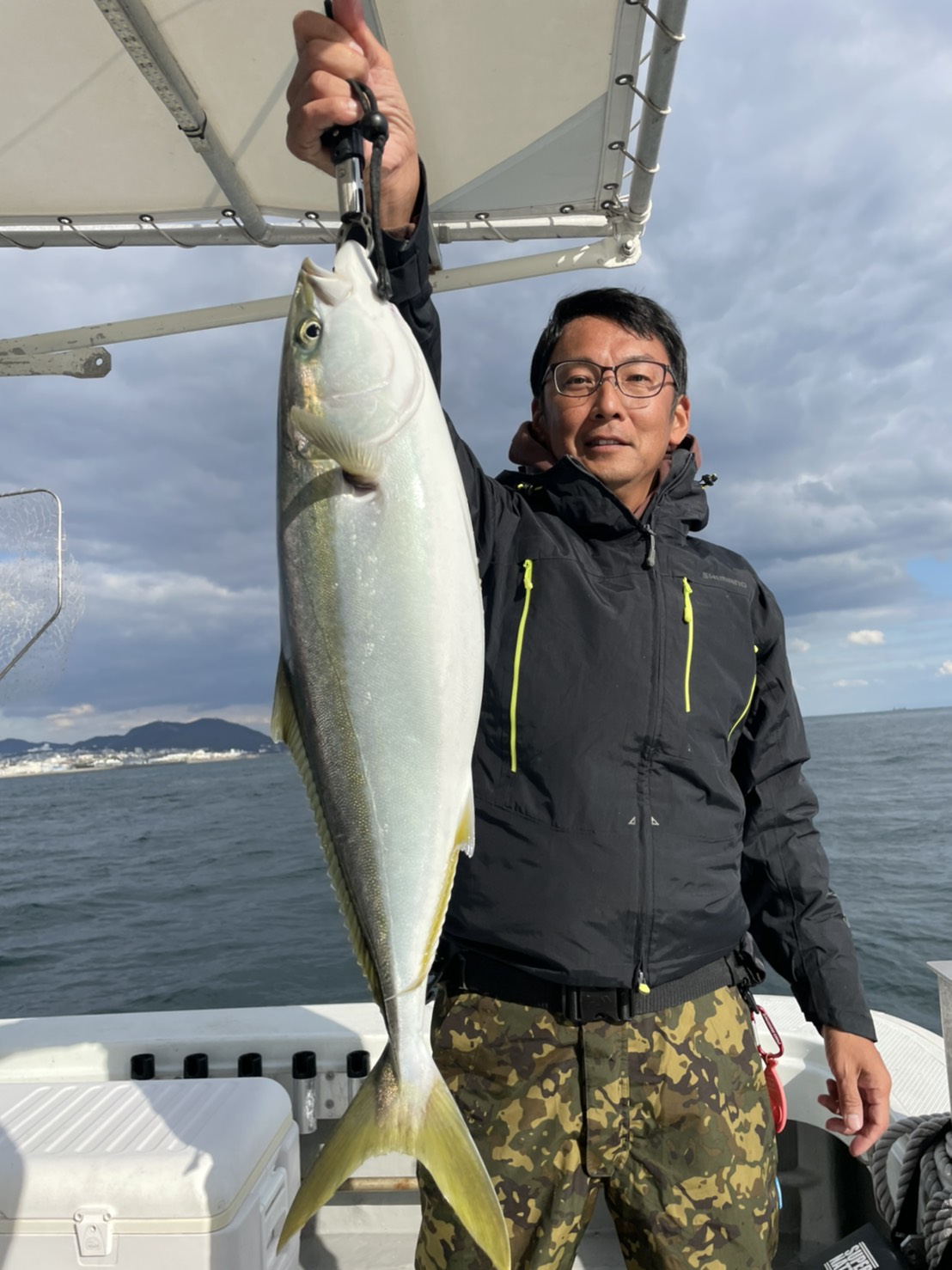 手巻きで釣りあげるの大変でした(*^▽^*)ブリサイズ!